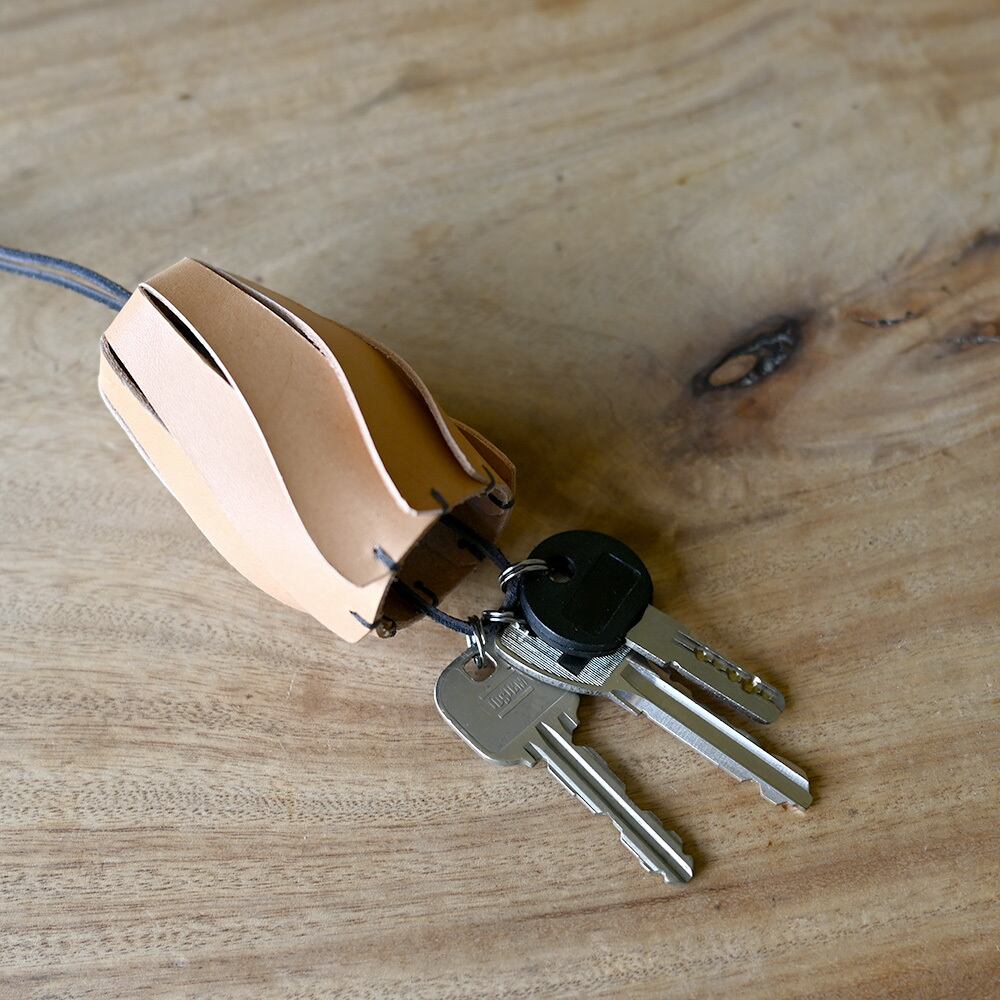 外出先でも、室内でも飾りたくなるようなオブジェになることを目指したデザイン。自立する立体的な形状は、棚に置いたり、壁にかけたりとインテリアの一部としても成り立ちます。また、鍵の量は6枚程度までなら見え方に影響なく美しく収まります。